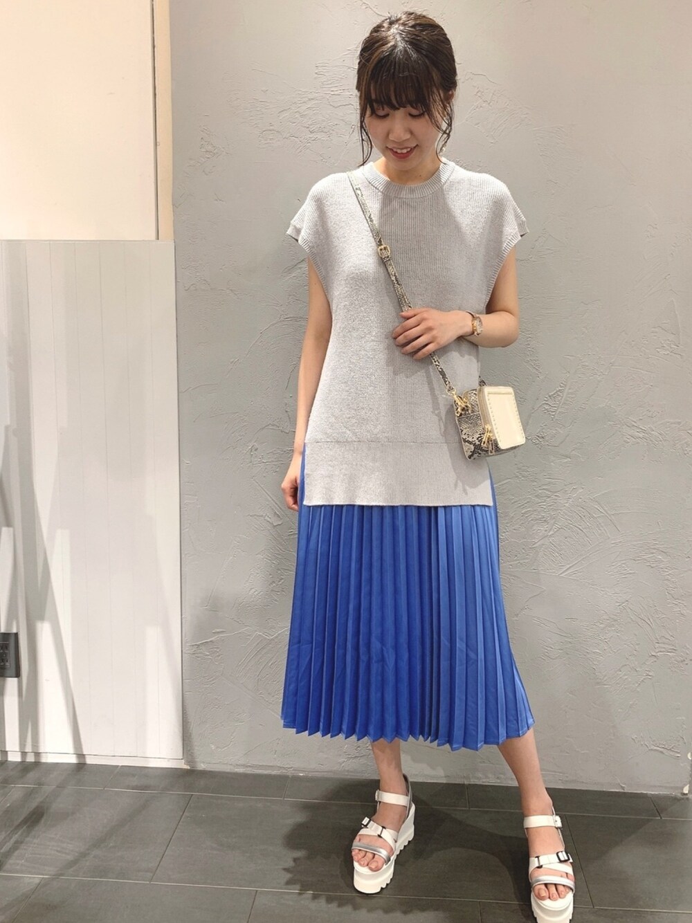 さとぅーのワンピース「ノースリーブニット×プリーツワンピースセット910825」を使ったコーディネート