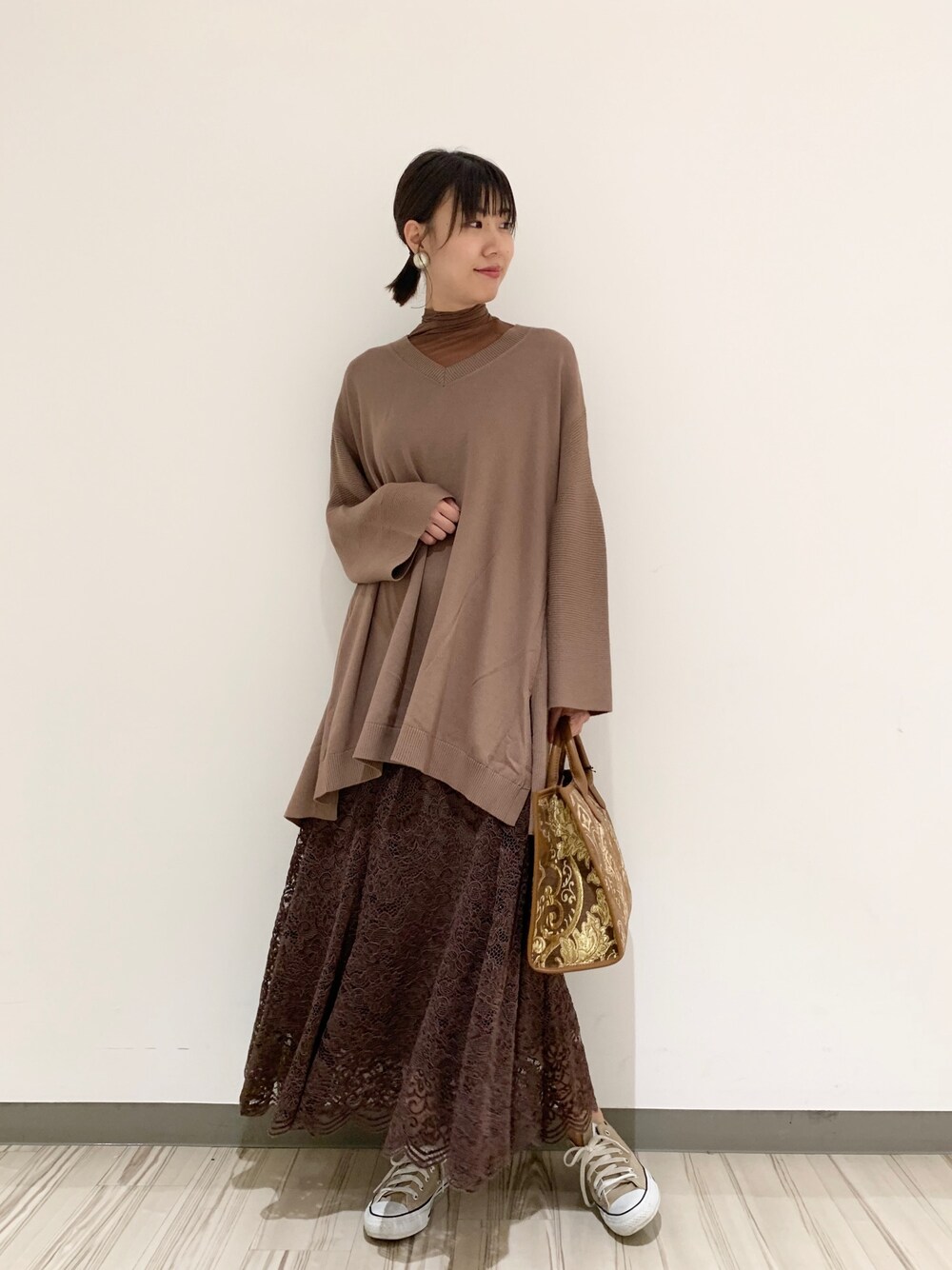 この秋はレイヤードが可愛い過ぎる! チュニック丈のざっくりニットは アンデミュウ らしくレーススカートで 女性らしく! 外しのスニーカーもお気に入り👟