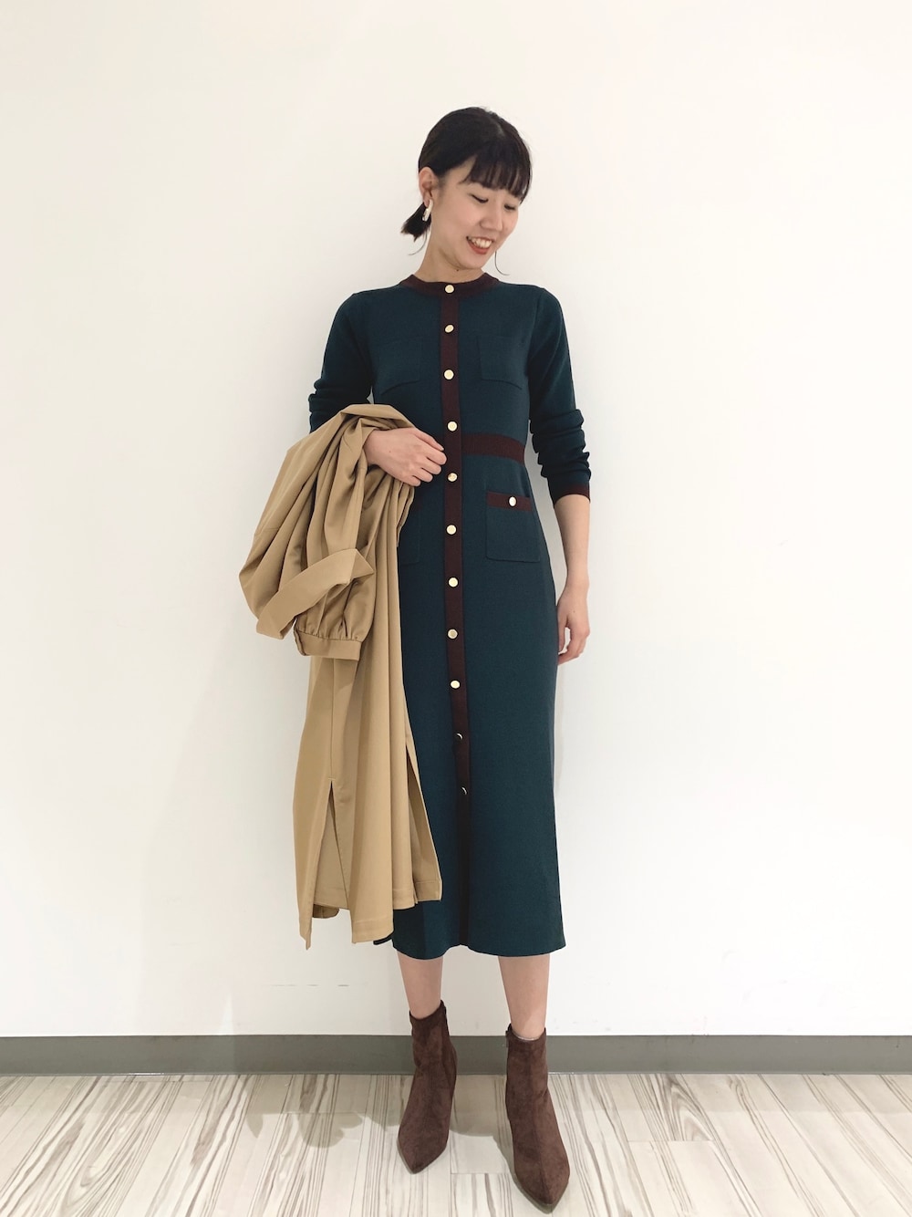 大人気のニットワンピ! 見せボタンなので、肌見えを気にせず アクティブに着こなせます! 完売カラーは予約開始されてます!