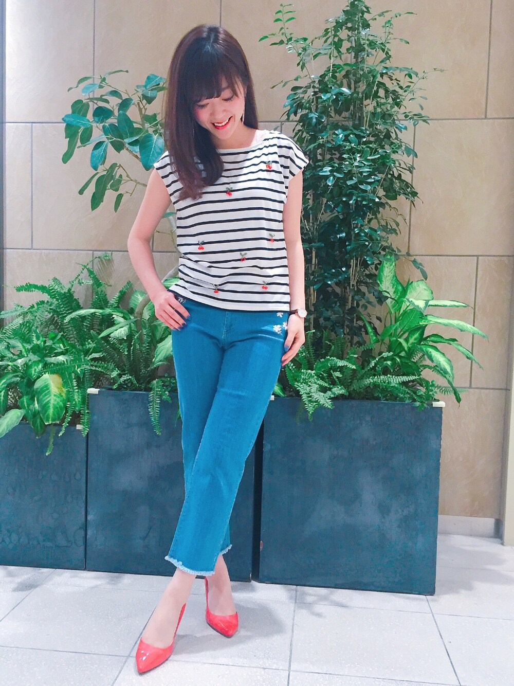 いつもいいね!&saveありがとうございます! コメントもいつもありがとうございます🤗✨ ついにゴールデンウィーク突入ですね!😉 本当あったかいので、 ついついウトウトしちゃいます。。😪💤 今回はサクランボモチーフ🍒🍒 のボーダーTシャツにデニムのパンツ合わせで ラフコーデです〜〜😳 🍒さくらんぼ🍒可愛いくて一目惚れ!