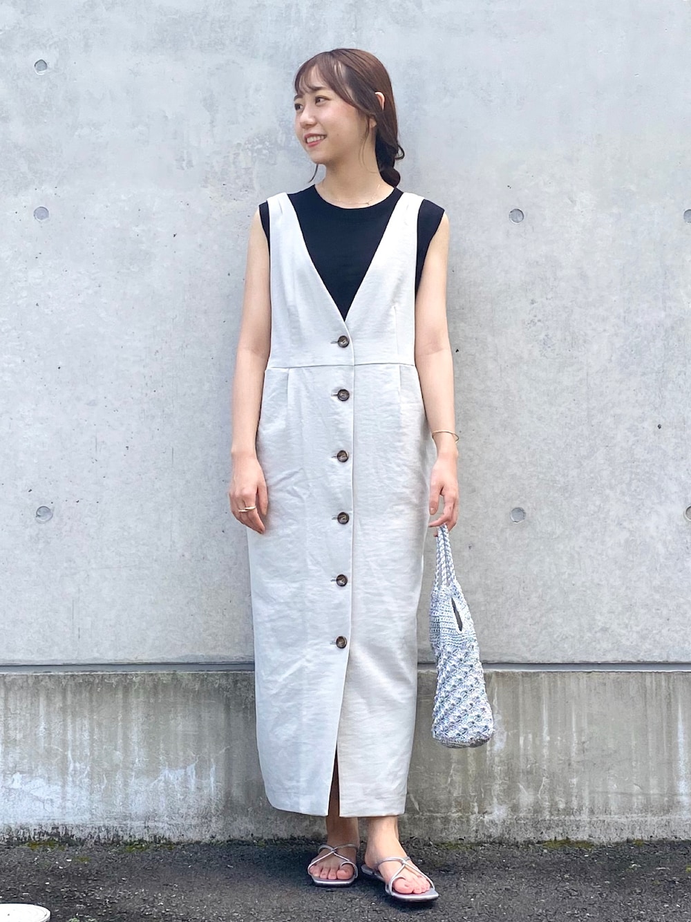 aのジャンパースカート「フロントボタンジャンパースカート」を使ったコーディネート