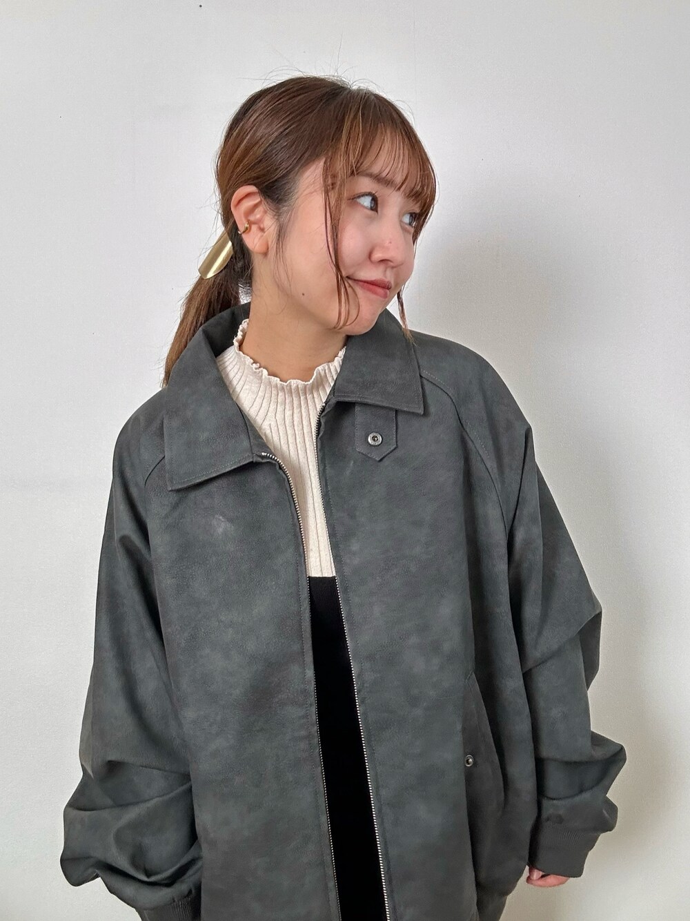 E R Uのブルゾン「【FFEIN(フェイン)】ヴィンテージライクフェイクレザージャケット / 合皮 ブルゾン ジップ オーバーサイズ」を使ったコーディネート