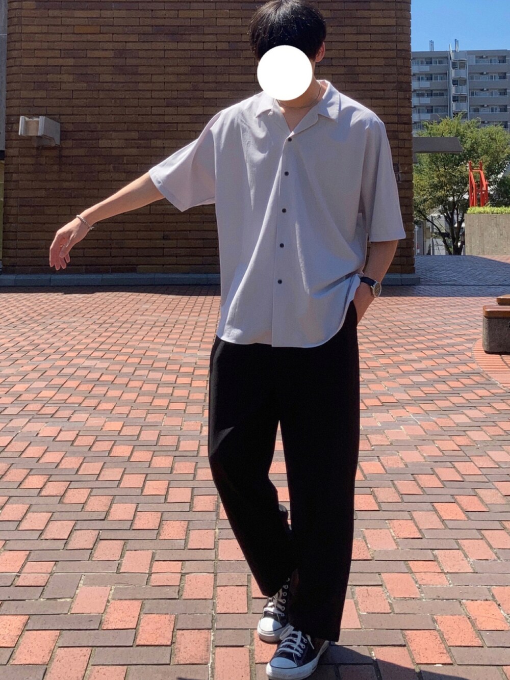 おはようございます! 閲覧していただきありがとうございます! 【真夏のシャツコーデ】 昨日は、久しぶりに暑すぎましたね笑 いよいよ梅雨明けです!夏が来る!!!🍧🏝🎆 明るめなライトグレーのシャツを使ったコーデです! パンツに黒を使っているので、シャツの明るさや爽やかさがより引き立ちます! ワイドパンツにシャツを合わせるというだけのシンプルなコーデなので、真似もしやすいと思います! オープンカラーシャツなので、ネックレスで首元を飾ってあげるとお洒落度爆上がりします🤩 シューズをサンダルにすれば、もっと暑い日にもできるコーデになりますよ!👡 もしよければ真似してみてください!