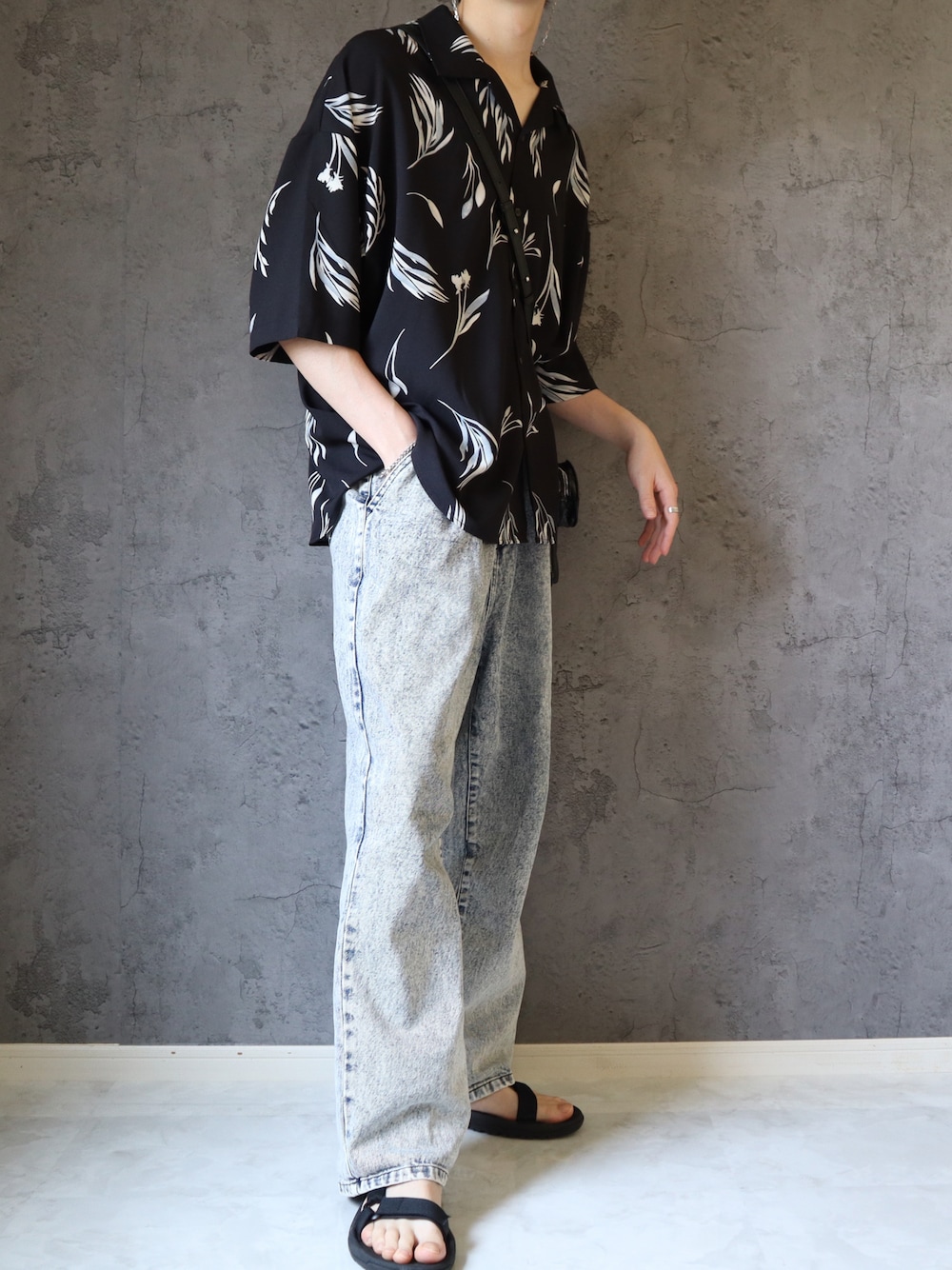おはようございます! 見てくださりありがとうございます! 【夏に着たい柄シャツ】 今年の夏にたくさん着そうなコーデ 柄シャツは黒メインですが、ボタニカルの柄が黒の重たい印象を和らげてくれます!