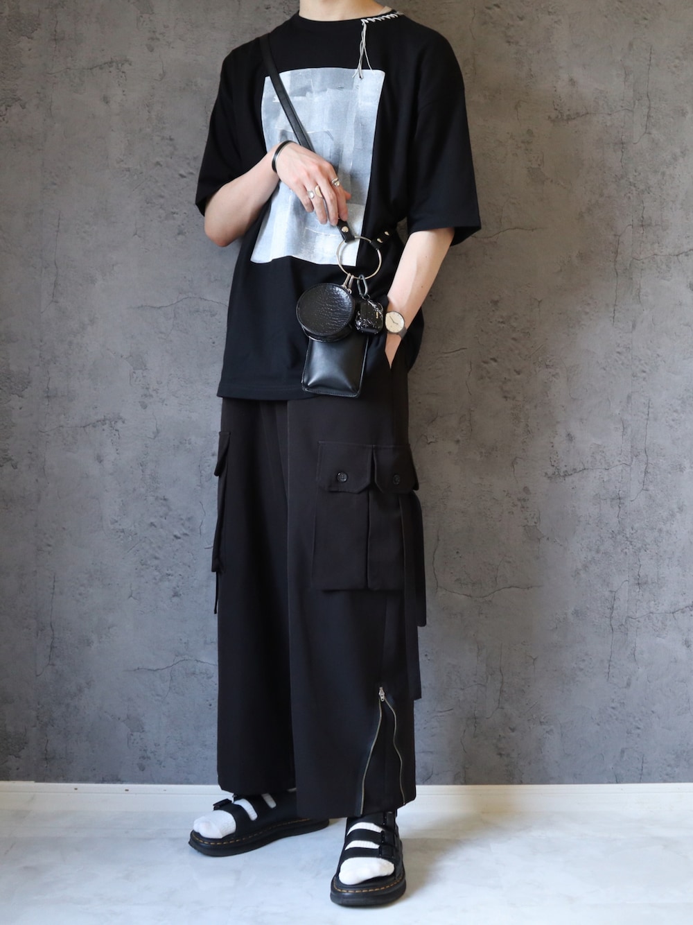 manamu (RAGEBLUE名古屋パルコ店)のTシャツ/カットソー「《ユニセックスアイテム》アブストラクトハンドプリントオーバーサイズステッチクルーネックTシャツ【MAISON SPECIAL/メゾンスペシャル】」を使ったコーディネート