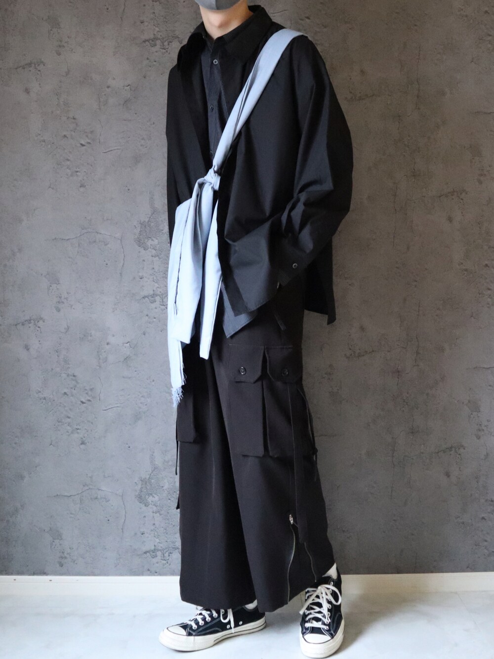 こんにちは! 見てくださりありがとうございます! デザインがカッコ良すぎるレイヤードシャツ サイドのコードもお気に入りポイント インナーのシャツをタックインして使うこともできます👏🏻 バッグもかっこいい👜 オールブラックの挿し色にピッタリ🫵🏻