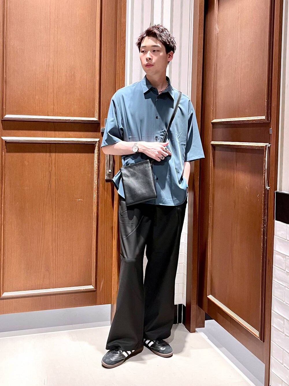 manamu (RAGEBLUE名古屋パルコ店)のスラックス「TR BUGGY WIDE STRAIGHT SLACKS/TRストレッチ/タックバギーストレートワイドスラックス」を使ったコーディネート