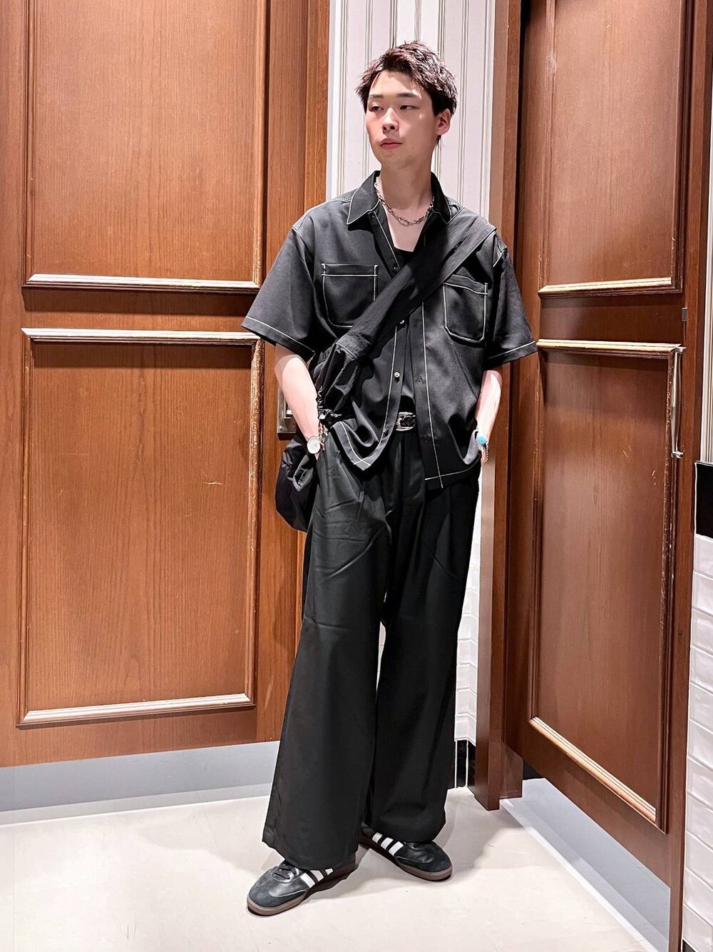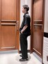 manamu (RAGEBLUE名古屋パルコ店)のスラックス「TR BUGGY WIDE STRAIGHT SLACKS/TRストレッチ/タックバギーストレートワイドスラックス」を使ったコーディネート