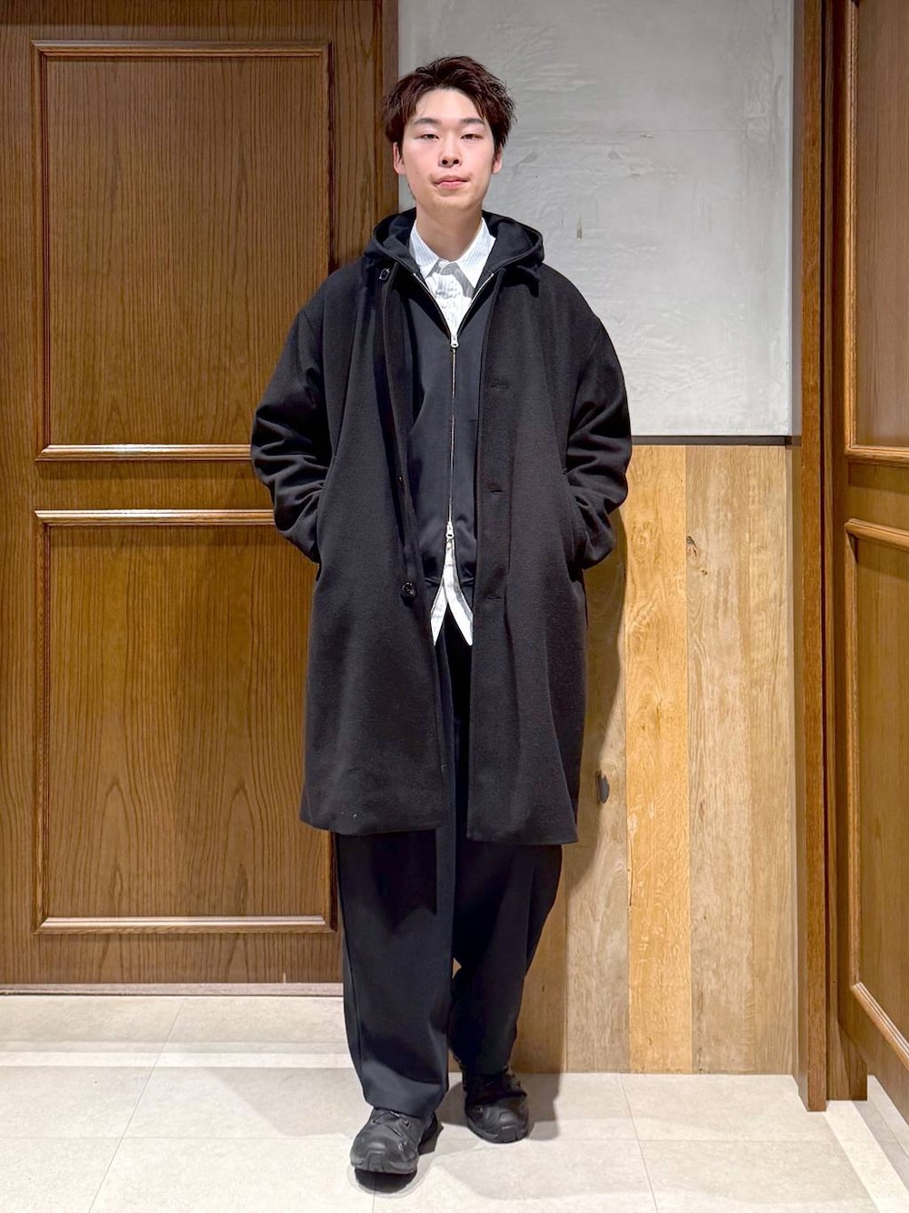manamu (RAGEBLUE名古屋パルコ店)のトレンチコート「WOOLLYTEC SIDE SLIT TRENCH COAT / ウーリーテックサイドスリット/ハイネックトレンチコート」を使ったコーディネート