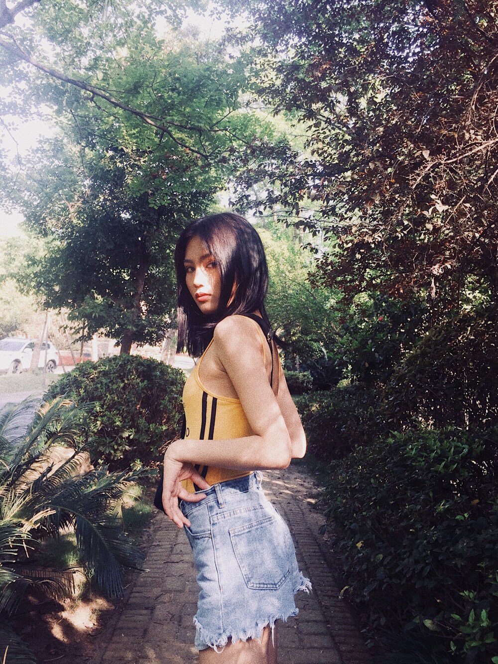 ブラック系のバッグを着用したレディースの夏コーディネートの1枚目の写真