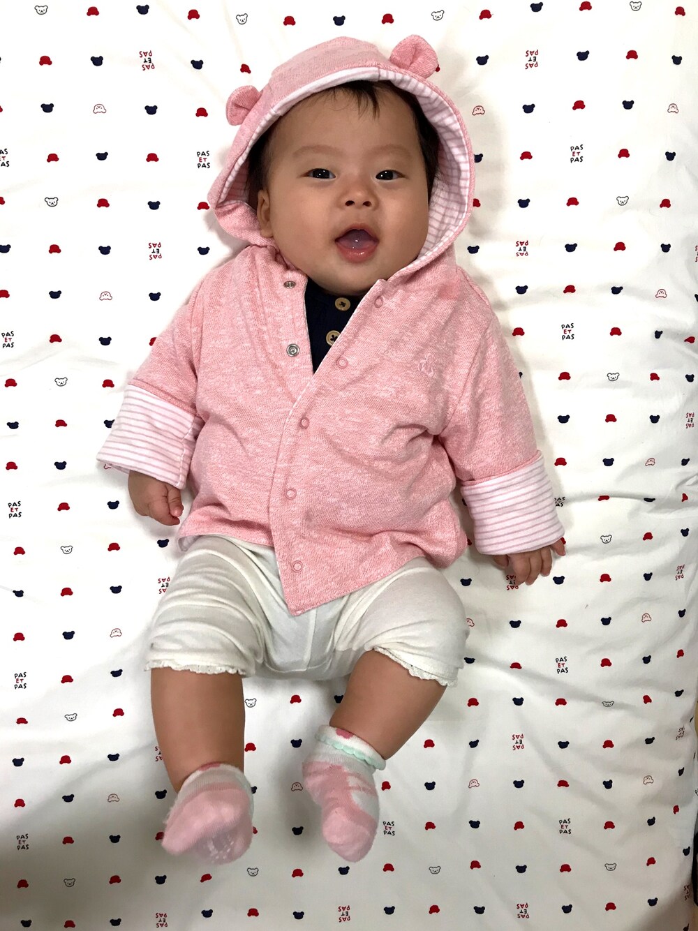 とんでもない土砂降りもフード付きパーカーでなんとか切り抜けたぜ! まだ少しサイズが大きいので袖まくり♡リバーシブルだからまくっても可愛い✨