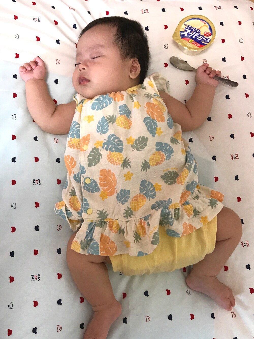 秋晴れというより残暑を感じた1日😂 まだまだドス恋パイナポーが活躍しそうです🍍 ドス恋パイナポーはおむつ替えがとっても楽ちん✨コンビのお洋服はすごい!!