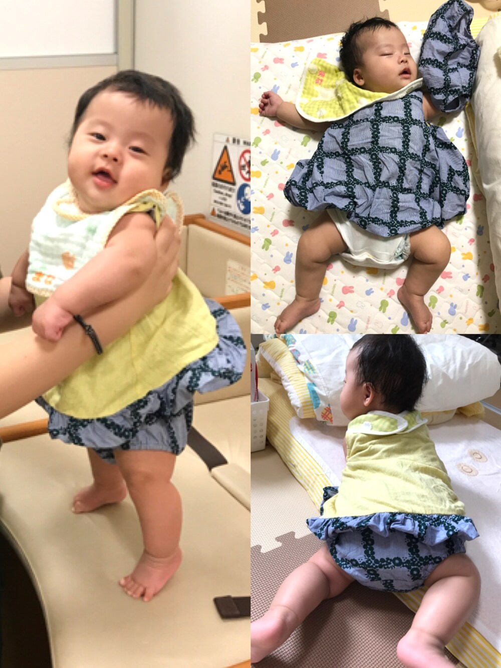 mana*のその他ベビー用品「フラワーチェックリバーシブルバルーンワンピース」を使ったコーディネート