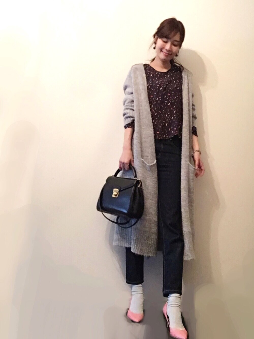 いいねフォローとってもうれしいです☺︎ シルバーのラメソックスとグレーのロングカーデを合わせました☺︎ お花見の予定が雨だったので、4人でカフェで4時間しゃべり続けました。 インスタ➡︎marie22u