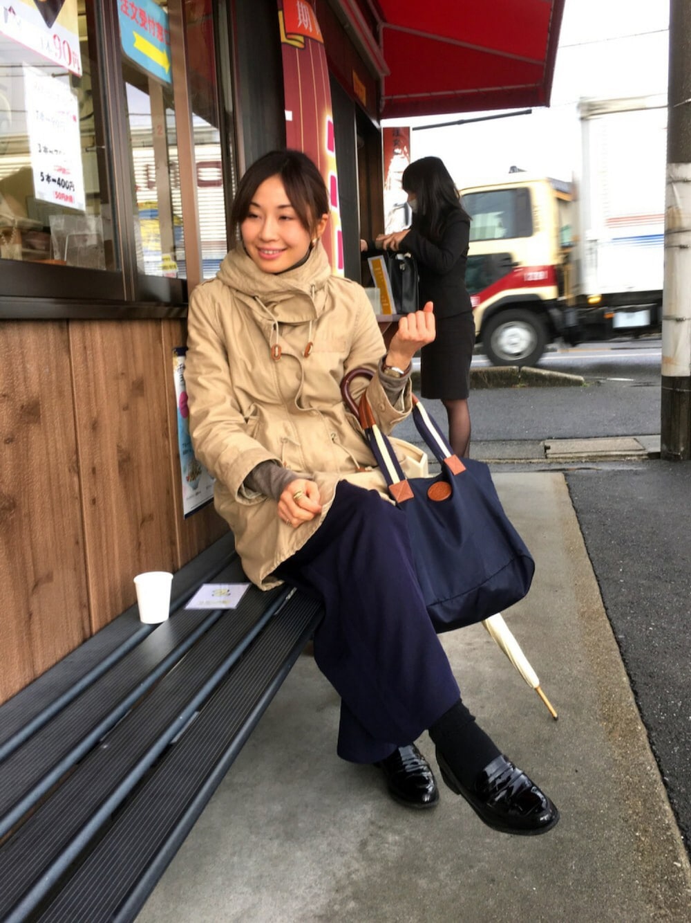 息子カメラマン📷🌸 今日は息子の園のクラスのママ達と送別会でした。 お店に傘を忘れて😭取りに戻り、ついでにたい焼き買って待ちでーす🤗