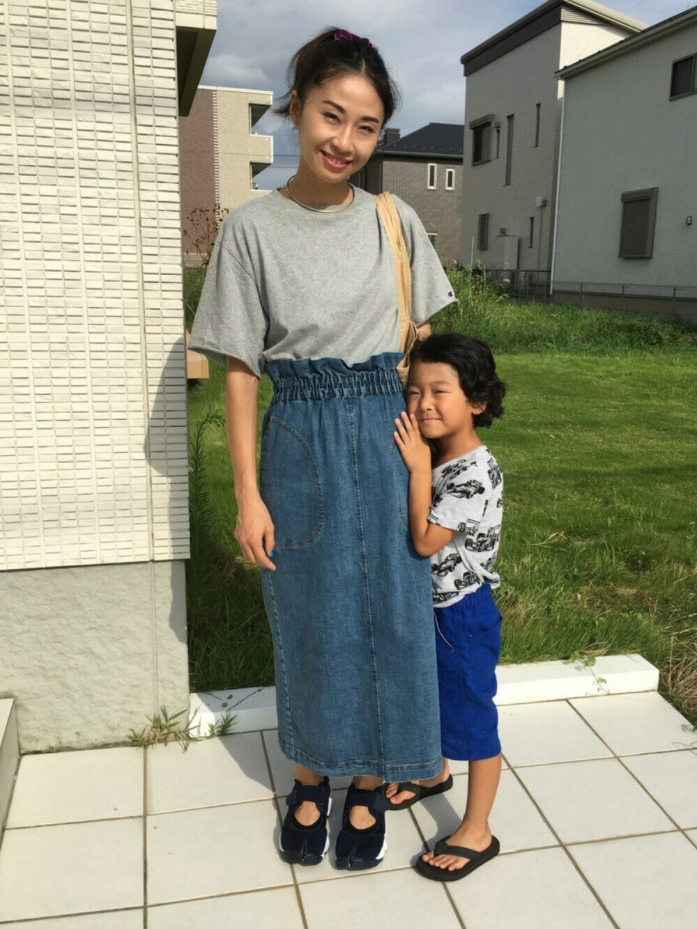 息子と📸💕 いつもひっつき虫😍😘💋 ナイキのエアリフトは使いやすいネイビーにチェンジ❣️ 少し小さめの作りだからサイズは26センチ🙈😂 まだまだ暑過ぎ🌞 メタルカーフ色違いで揃えたいくらい使いやすいです☺️💗