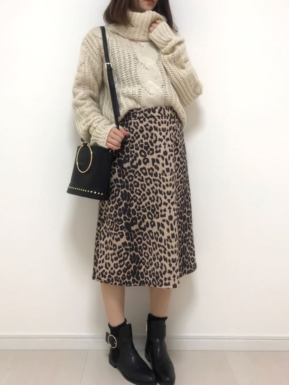 ボリュームニット×ヒョウ柄のスカートです。 最近またレオパードが流行ってきてますね。