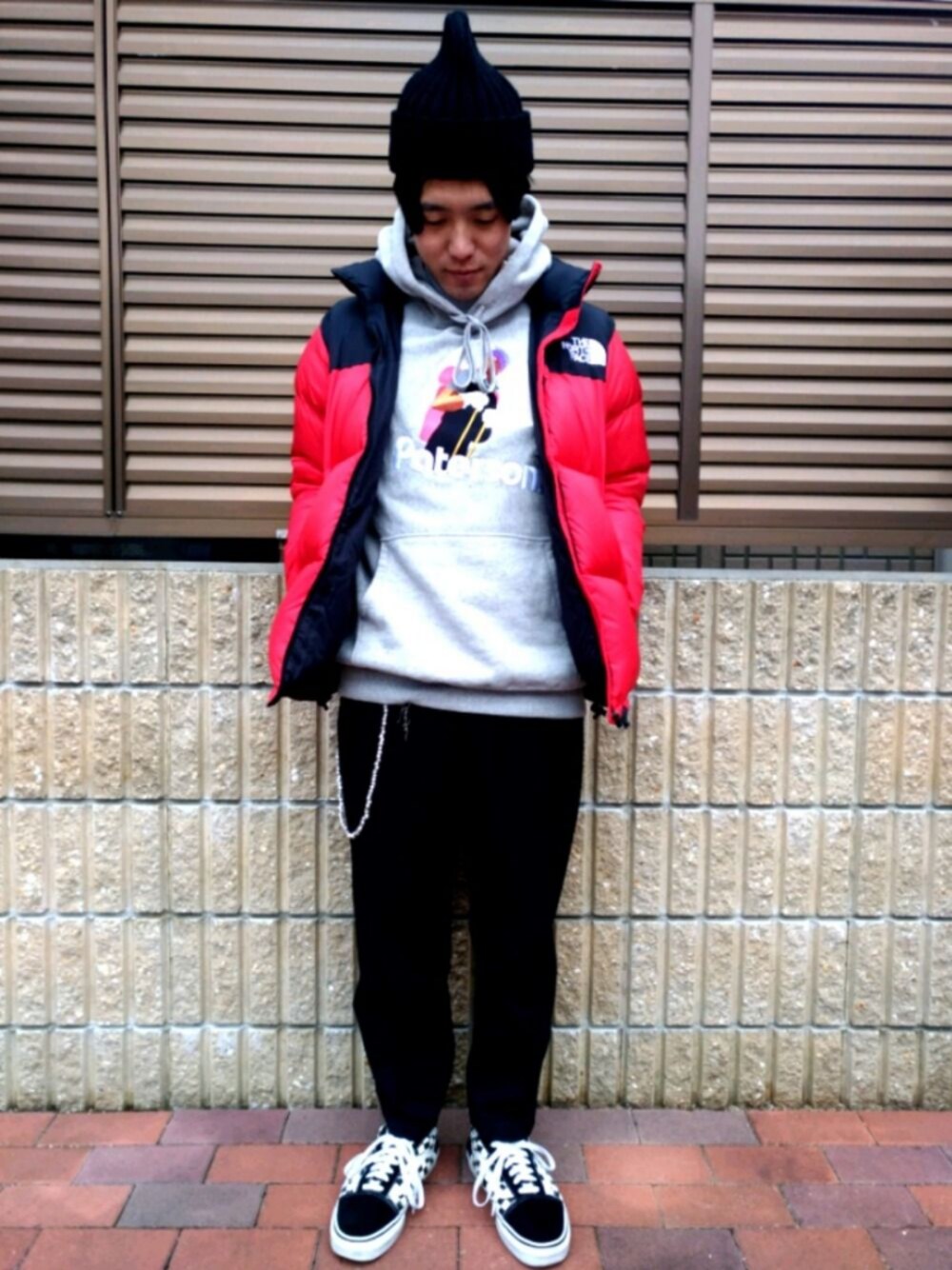 【ヌプシスタイル】 ヌプシは赤がいい。 冬本番を乗り切るのはヌプシで易し。 インナーには肉厚フーディそして パンツはキレイめスラックスでバランスを取ります。