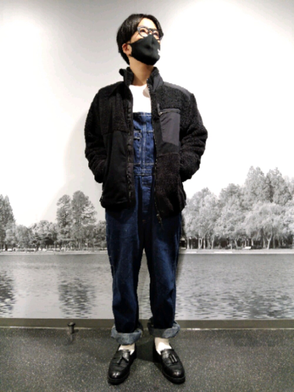 【デニム×ボア】 野暮ったくなるような組みあわせも、色を絞れば上品に。 ブラックとホワイトでまとめました。