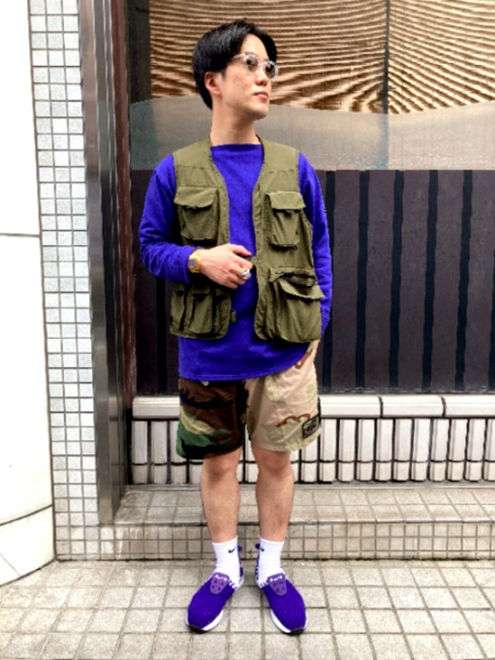 空前のフィッシングベストブーム。 今日は無地のセイントジェームスにダイワのベストを合わせました。 オリーブとパープルも意外と合いますね!