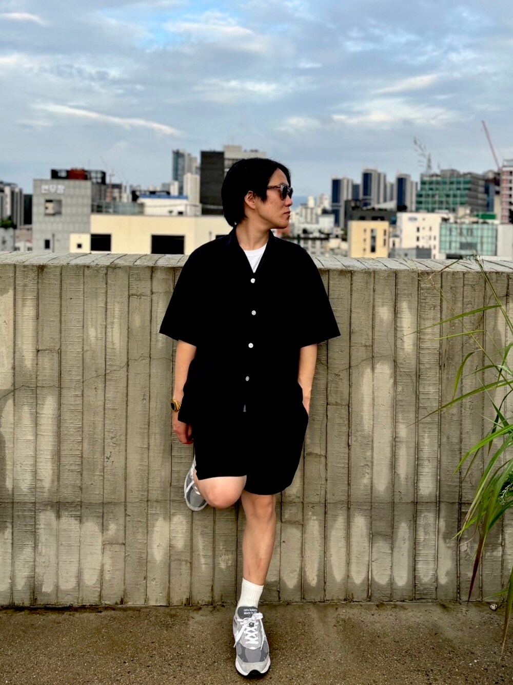 街でも使える、エイチ ビューティ アンド ユースのパジャマセットアップでソウルを闊歩。サイズと色に気を付ければ、リラックスウェアもカチッと決まります。