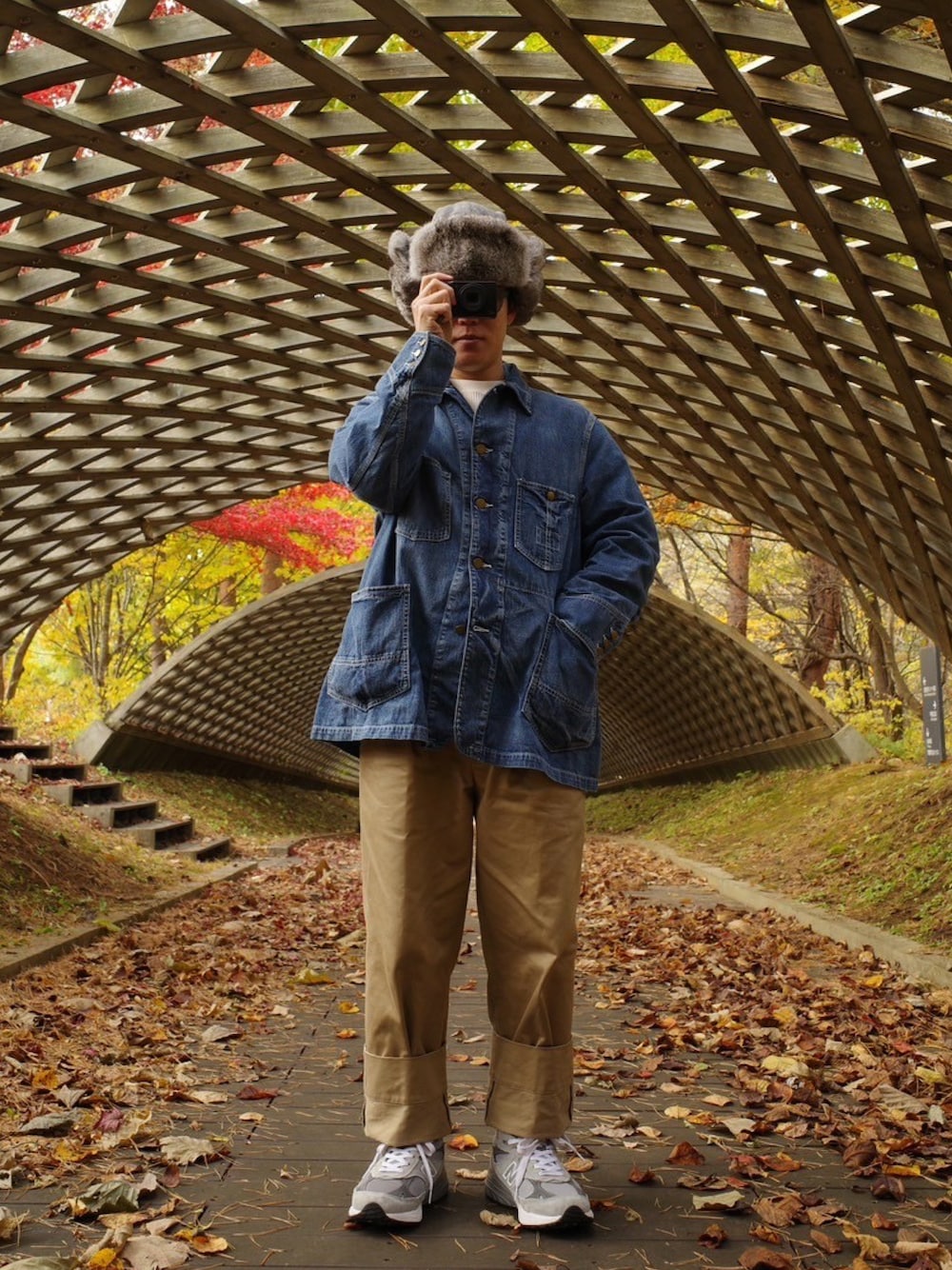 上下アンライクリーでまとめてます。 頭は最強に暖かいL.L.Beanのモフモフ帽子に、これまたグレーのニューバランス993を合わせて。