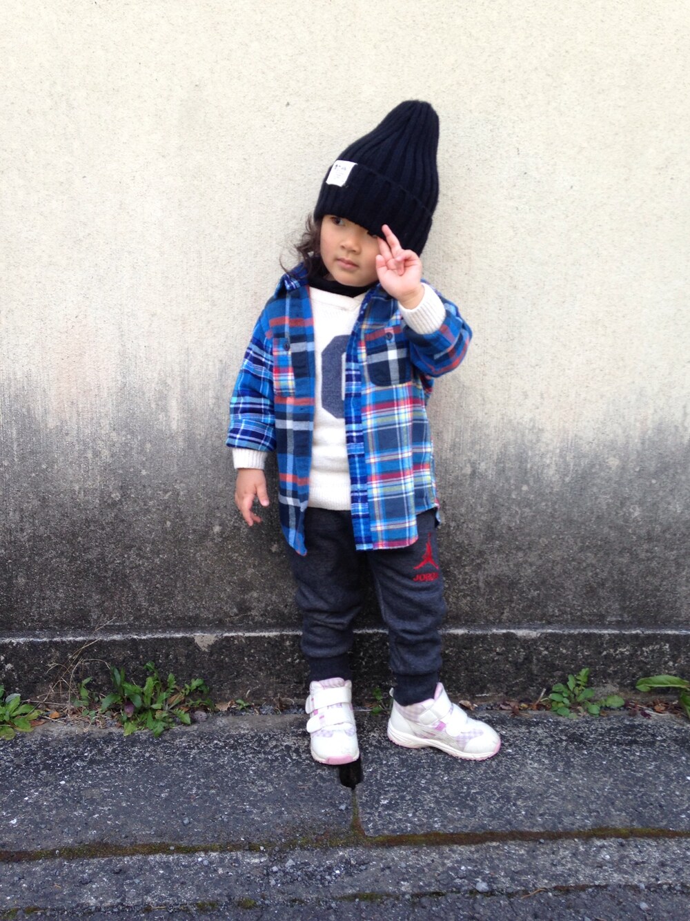 パパとお揃いのジョーダンスウェットセットアップ(韓国)、今日はパンツだけ履いて♪ボーイズライクなstyleで(^-^)