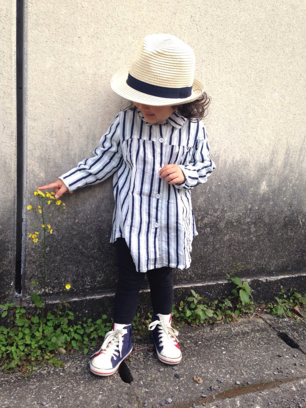 サイズ120のシャツは1900円という値段とデザインに一目惚れしたからどうしても欲しくて購入♪ワンピースから始めてシャツまで長〜く使おうっと(^^)