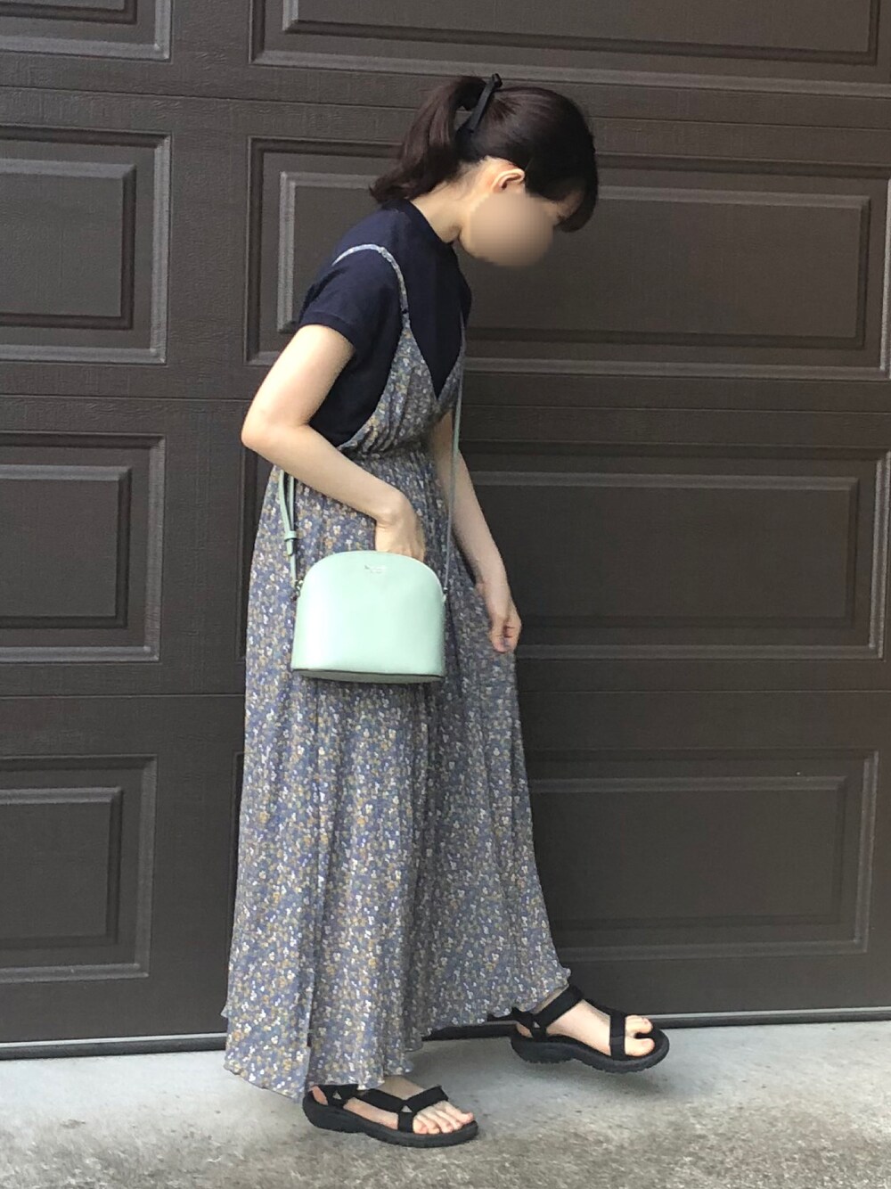 今日はナチュラルコーデです🌷 キャミワンピース の素材が クシュクシュとしていて、 かわいいです💕