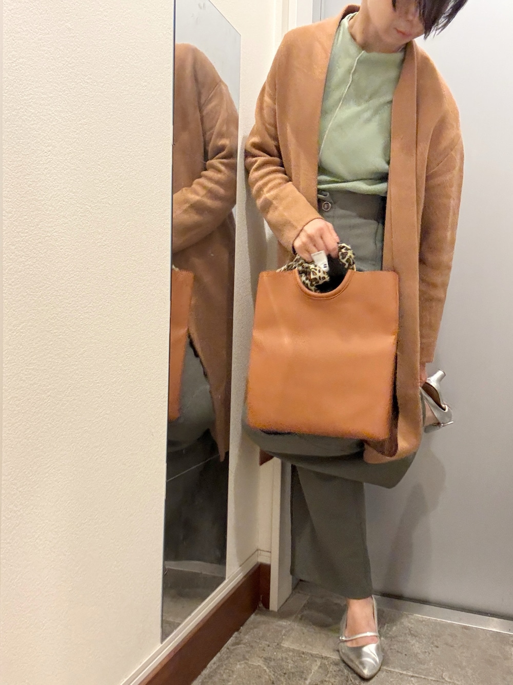 ▶ 今日のテーマ:春を色味で先取り、あったかコーデ ✔ 低身長的に気をつけたこと ロングガウンの丈感を出すため 上下をグリーンでまとめました ✔ サイズ感 ガウンは厚手なので、肩幅に気をつけて サイズを選びました。シルバーのパンプスで 春っぽく&引き締めを狙いました。 outer:GU tops:chocol raffine robe bottom:ASTORIA ODIER shoes:GU なかなかヒョウ柄のスカーフを使えてなかったので、バックのハンドル部分に巻いてみました。 155cm / 骨格ウェーブ / 通勤研究 をしています。投稿は ✔ 丈感が分かる ✔ 低身長でも失敗しない ✔ 通勤向き でアップしています。