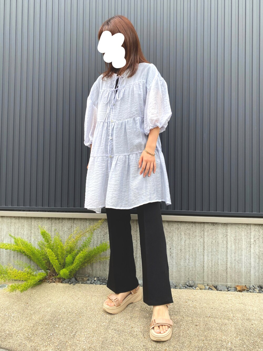 manmaru7325のスラックス「ドライギャバスリットカラーフレアパンツ」を使ったコーディネート