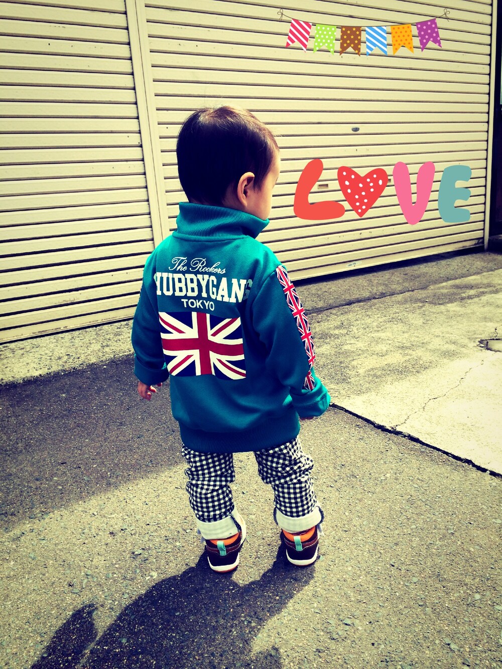 ma-haruru.のジャージ「BABY ロゴプリント ユニオンジャックトラックジャケット」を使ったコーディネート