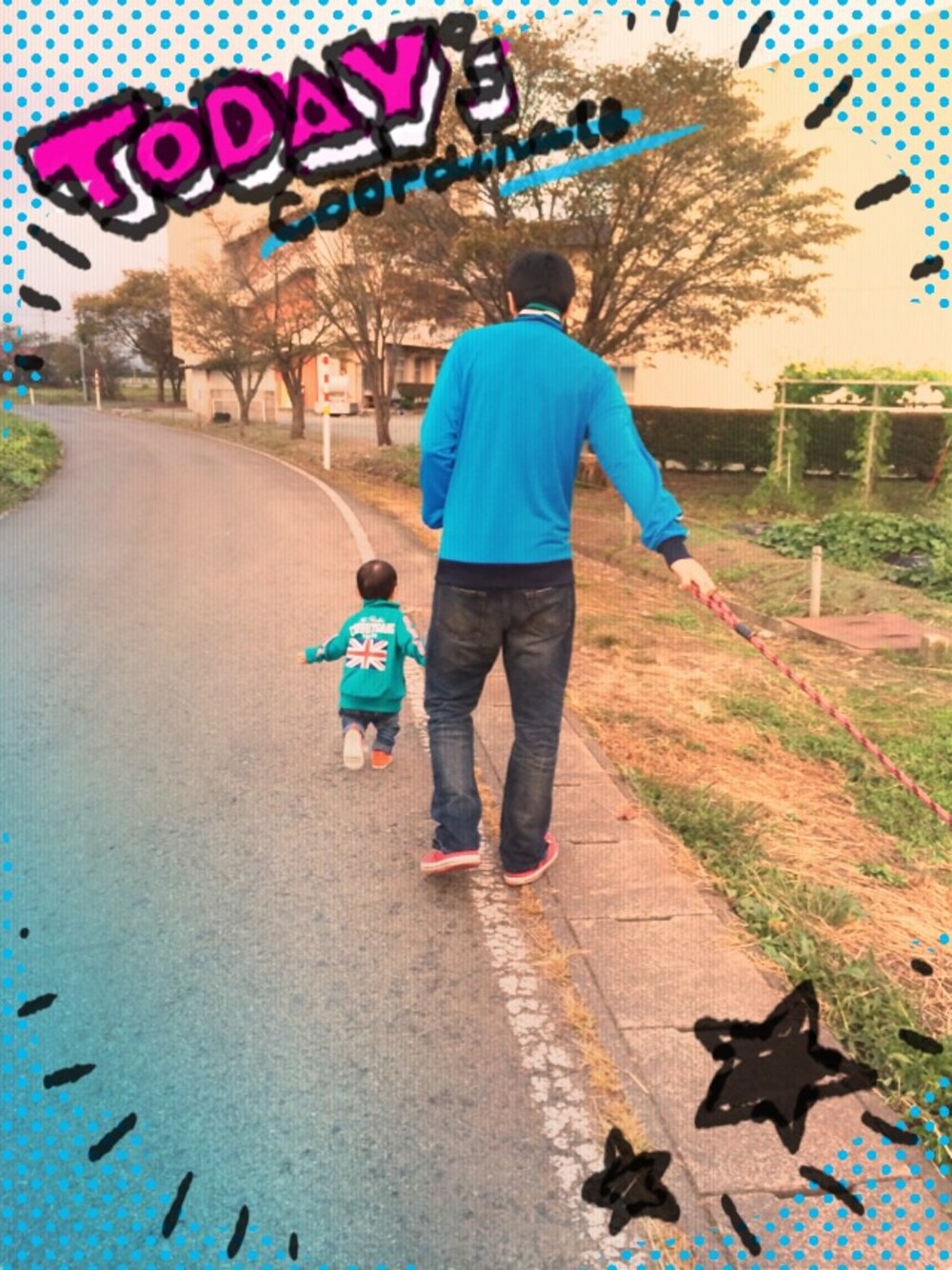 この前はみんなで仲良く犬の散歩…のはずが。 ムスメは途中散歩から脱落して母ちゃんと小学校で遊びました。 父ちゃんとムスメは仲良くお揃い。 父ちゃん トップス:adidas デニム:マウジー ムスメ デニム:西松屋