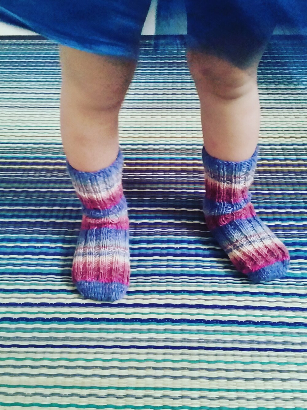 ふふふ。完成したのです! 娘の靴下が!!! 嬉しくって載せちゃうよ(笑) ちゃんと手編みですよ~(´∇ノ`*)オホホホホ♪