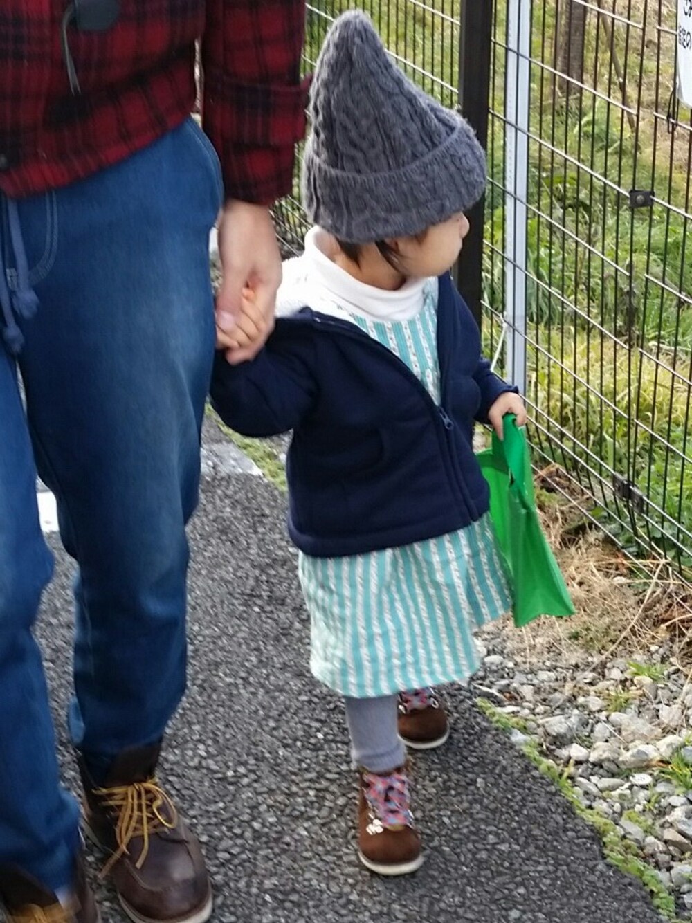 ある日の父と娘。 お気に入りのTSUTAYAのテッドのバックを持ってお出かけ。なぜか怒ってる方をチョイスしてました。 手編みの帽子でぬくぬくです(*´ω`*) (ホントは自分でかぶるために編んだけど小さく仕上がってしまったので娘に・・・笑) トップス:西松屋 タイツ#イオン