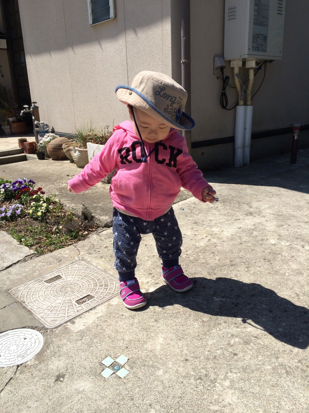今日は新しい帽子をかぶってお散歩。 ちょっと大きかったみたいww そろそろ桜が咲きそうです。 星柄ズボン:赤ちゃん本舗 帽子:BEBE スニーカー:ホーキンス
