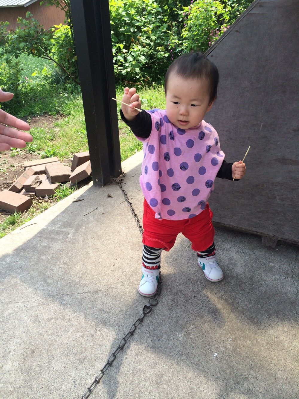 今日はパパが選んでくれた赤いショートパンツ!! そろそろもう一つ夏用帽子が欲しいね♪( ´▽`) ショートパンツ:GAP インナー:西松屋 レッグウォーマー:ジャスコで購入。