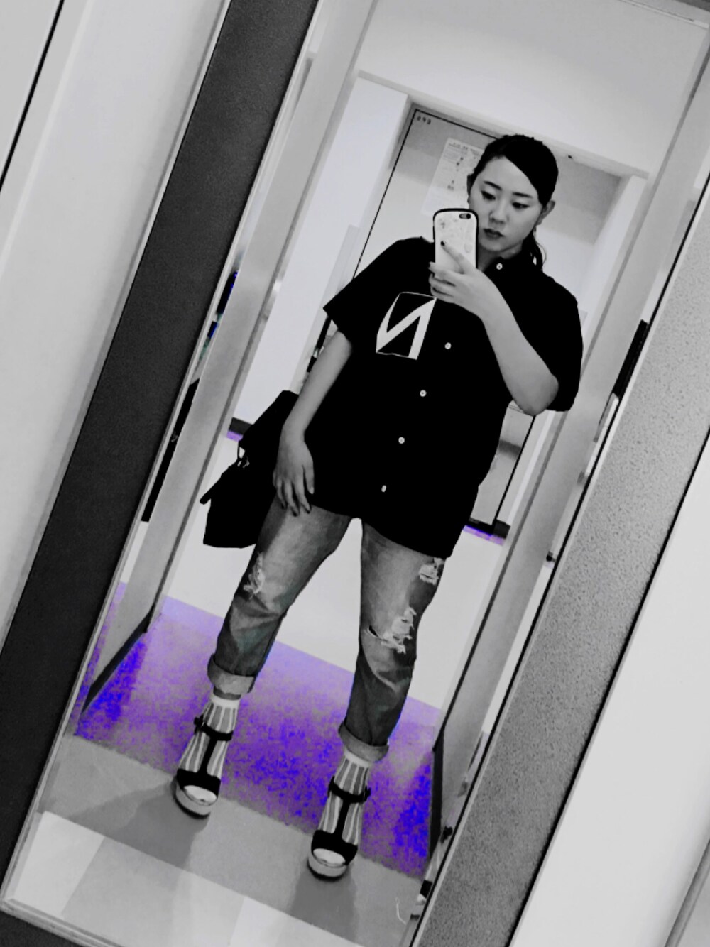 大好きなNissyのLIVEグッズのシャツをデニムと合わせました😊バッグはYOKO FUCHIGAMIのブランドムックの付録!