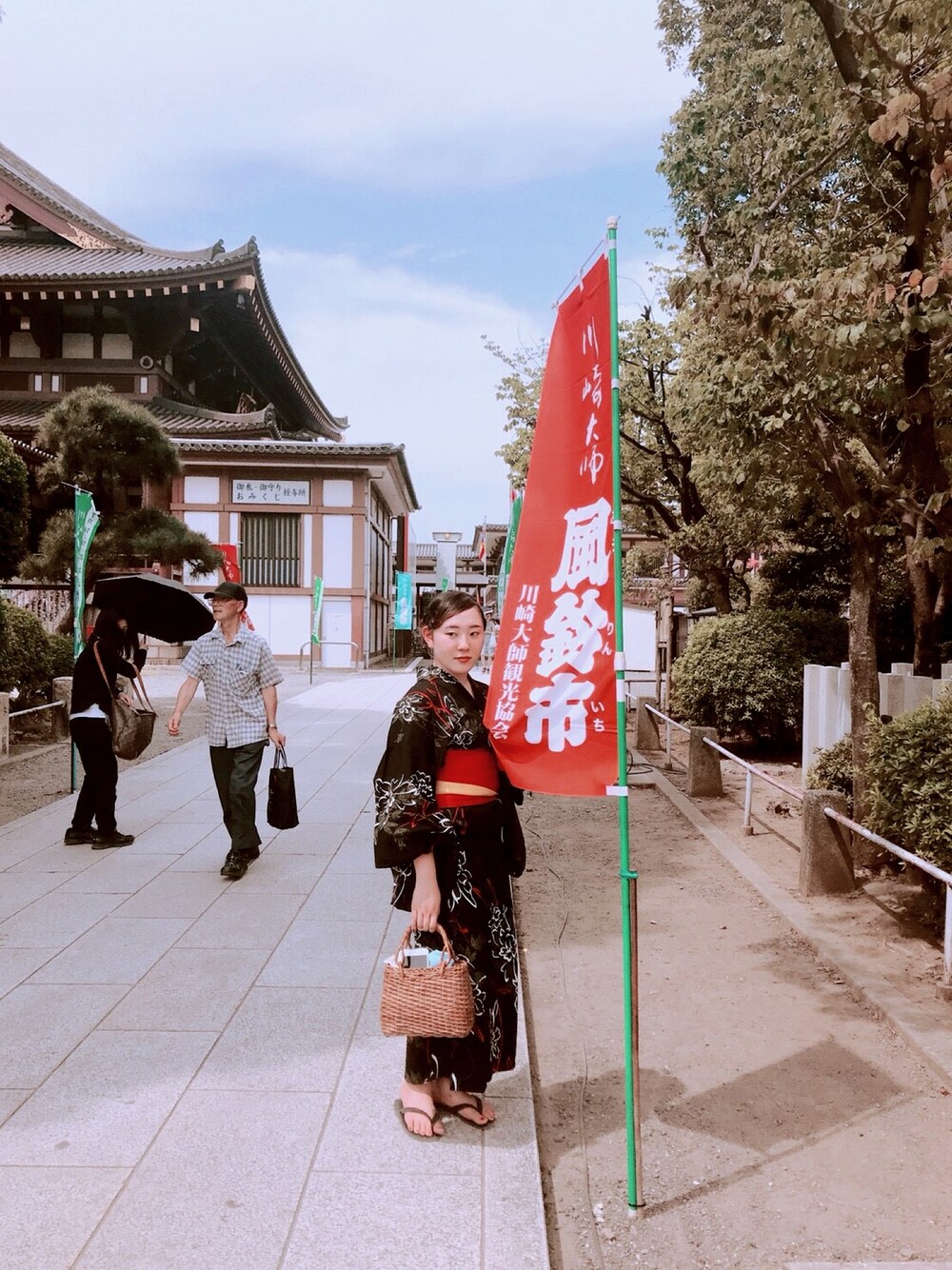☆ 先日、川崎風鈴市に行きました。母のお下がりの黒い浴衣に赤と黄色のリバーシブルの帯。姉様結びって結び方をしてみた! 下駄なかったから黒のビーサンで…😏 バッグはかごバッグ。 風鈴見るより食べ物食べてる時間の方が圧倒的に長かったけど、楽しかった🌟