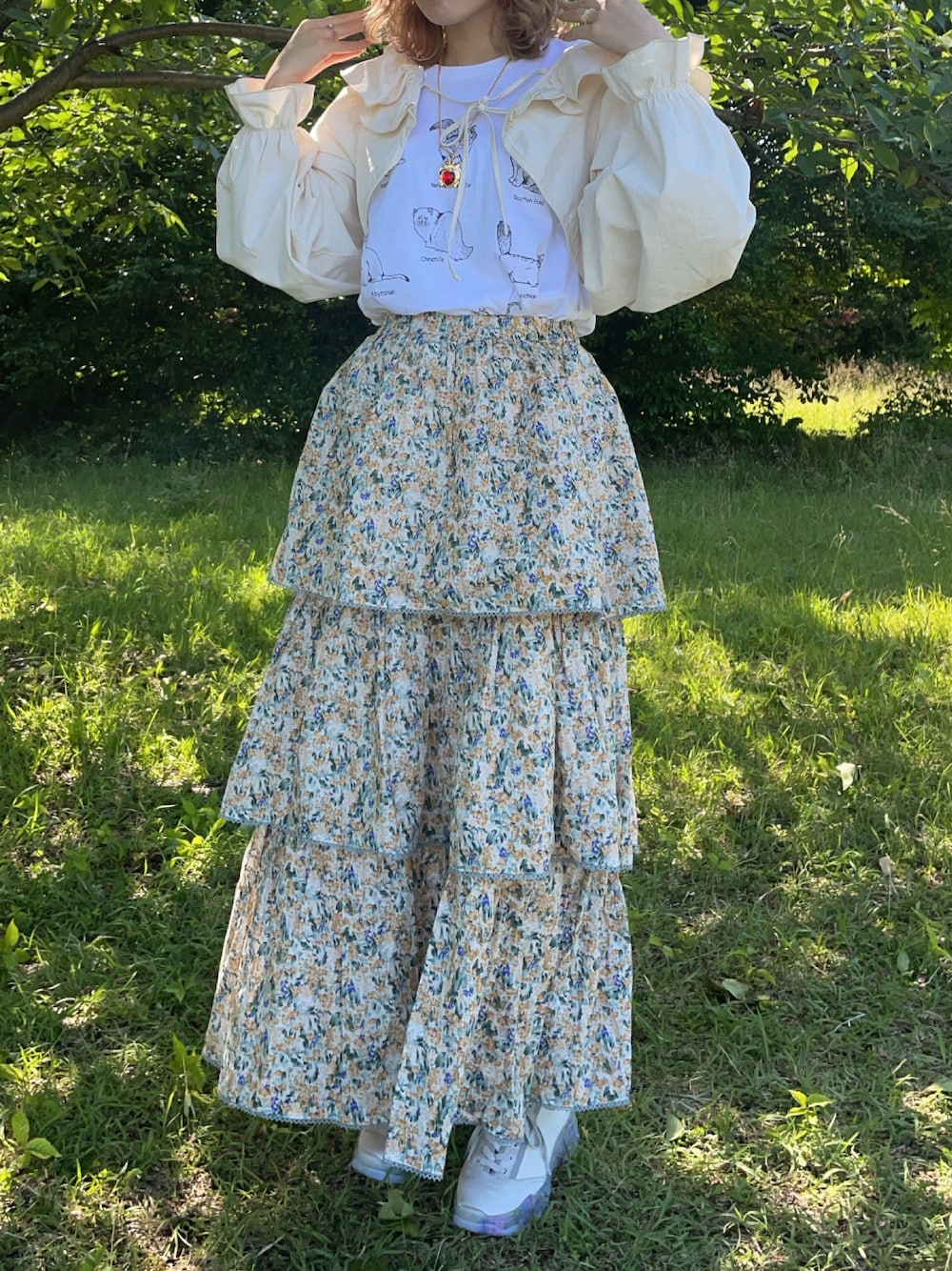 mamerabbitのスカート「floralティアードスカート」を使ったコーディネート