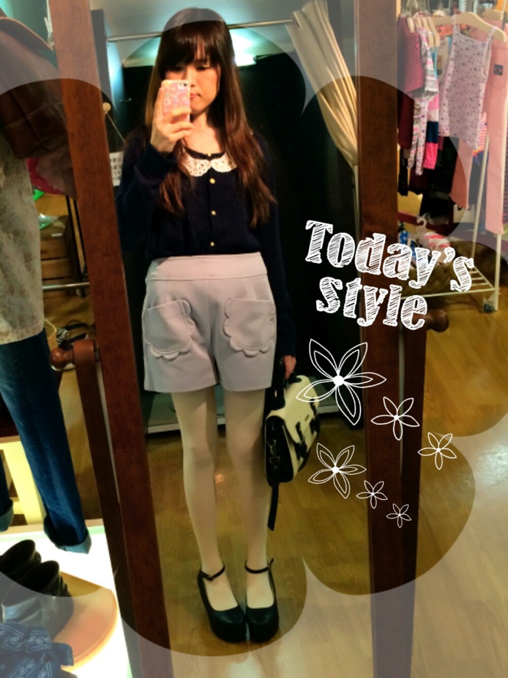 ネイビーのカーディガンにハンドメイドの付け衿ネックレスつけたらいい感じになったよ♪(*´◒`*)