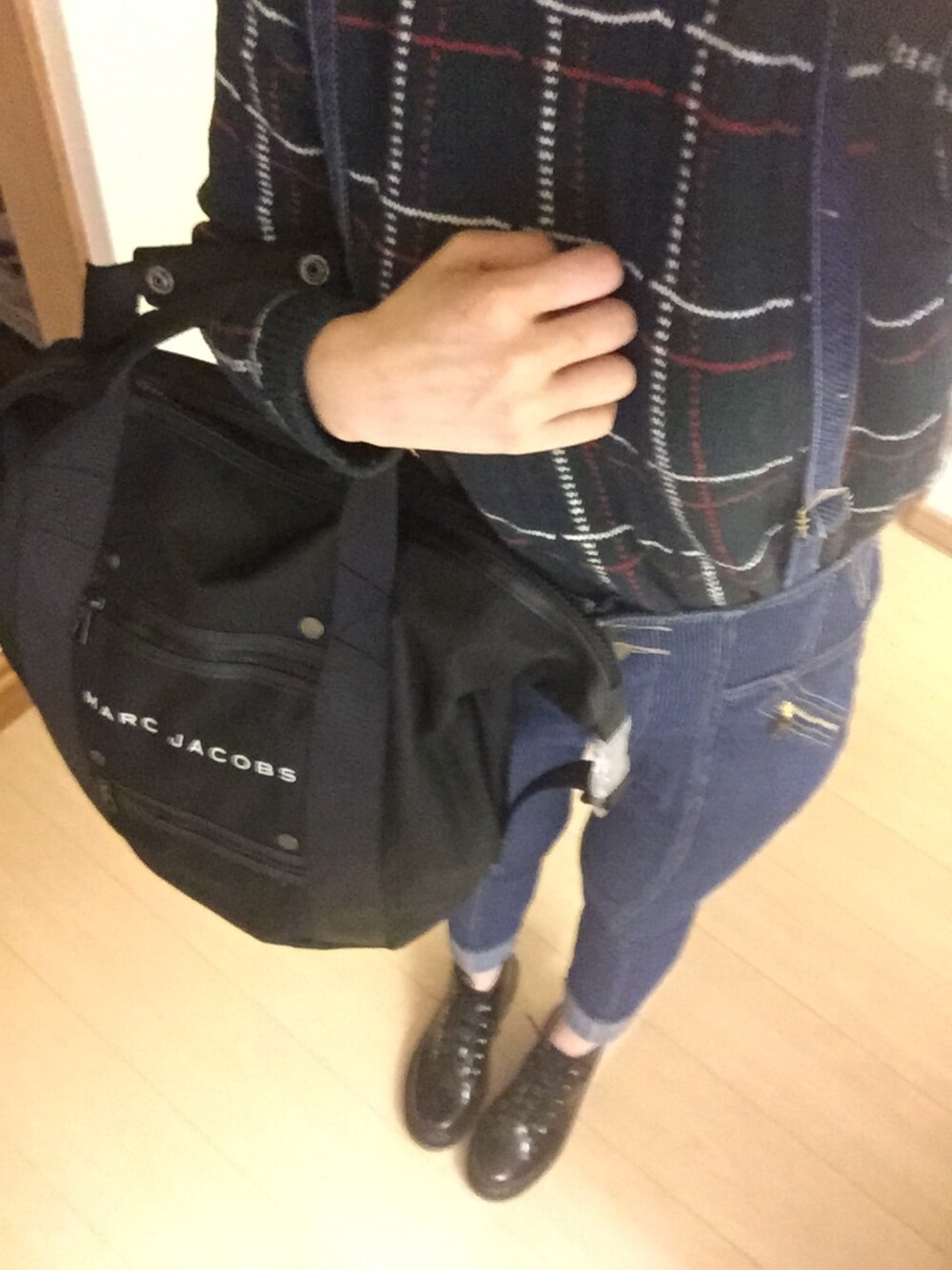maaaminのその他パンツ「ストライプサスペ付スキニーパンツ」を使ったコーディネート
