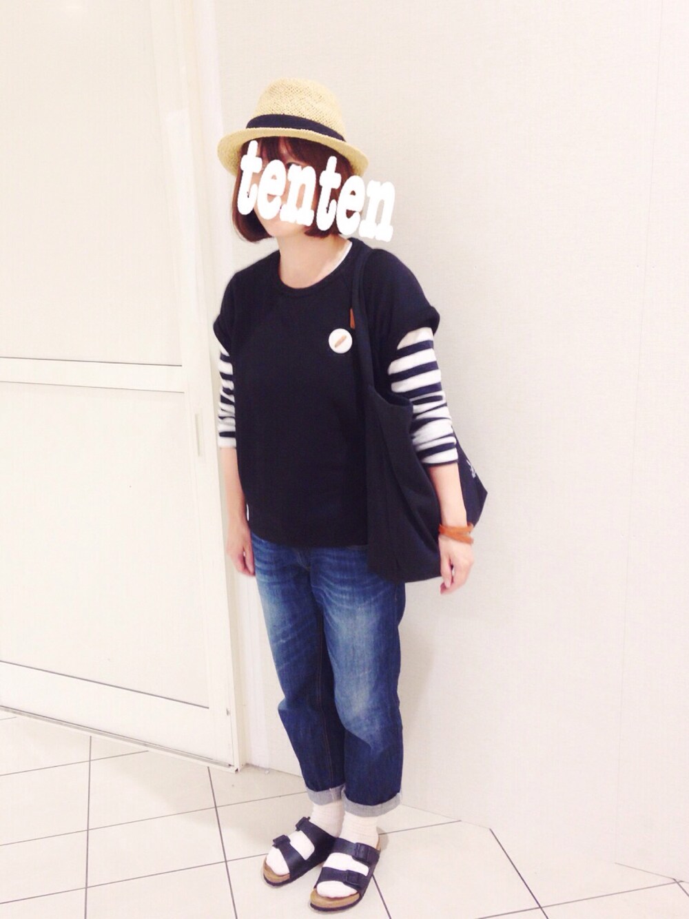 半袖スウェットにボーダー デニムにサンダルの ゆる〜いコーデです😊 仕事帰りに 買い物〜2日連続 餃子を食べました〜😁 匂いますよっ〜ww GW最終日 ゆるりと お過ごし下さい♪ いいね コメント SAVE フォロー 嬉しいです〜ありがとうございます☺️