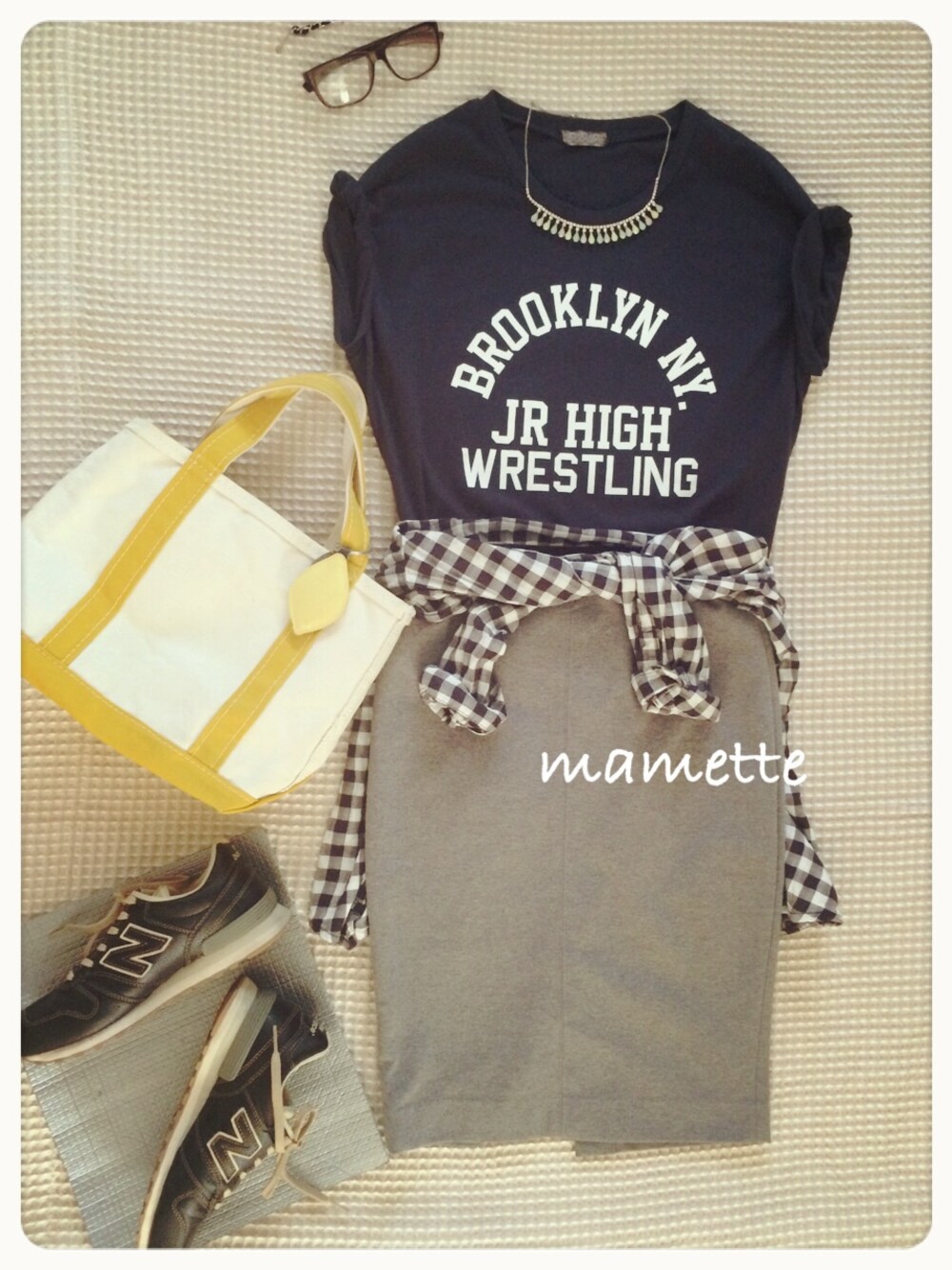 「レタードT×ペンシルスカート」 t_?? skirt_uniqlo shirt_forever21 shoes_new balance きれいめカジュアルにしてみました✴︎