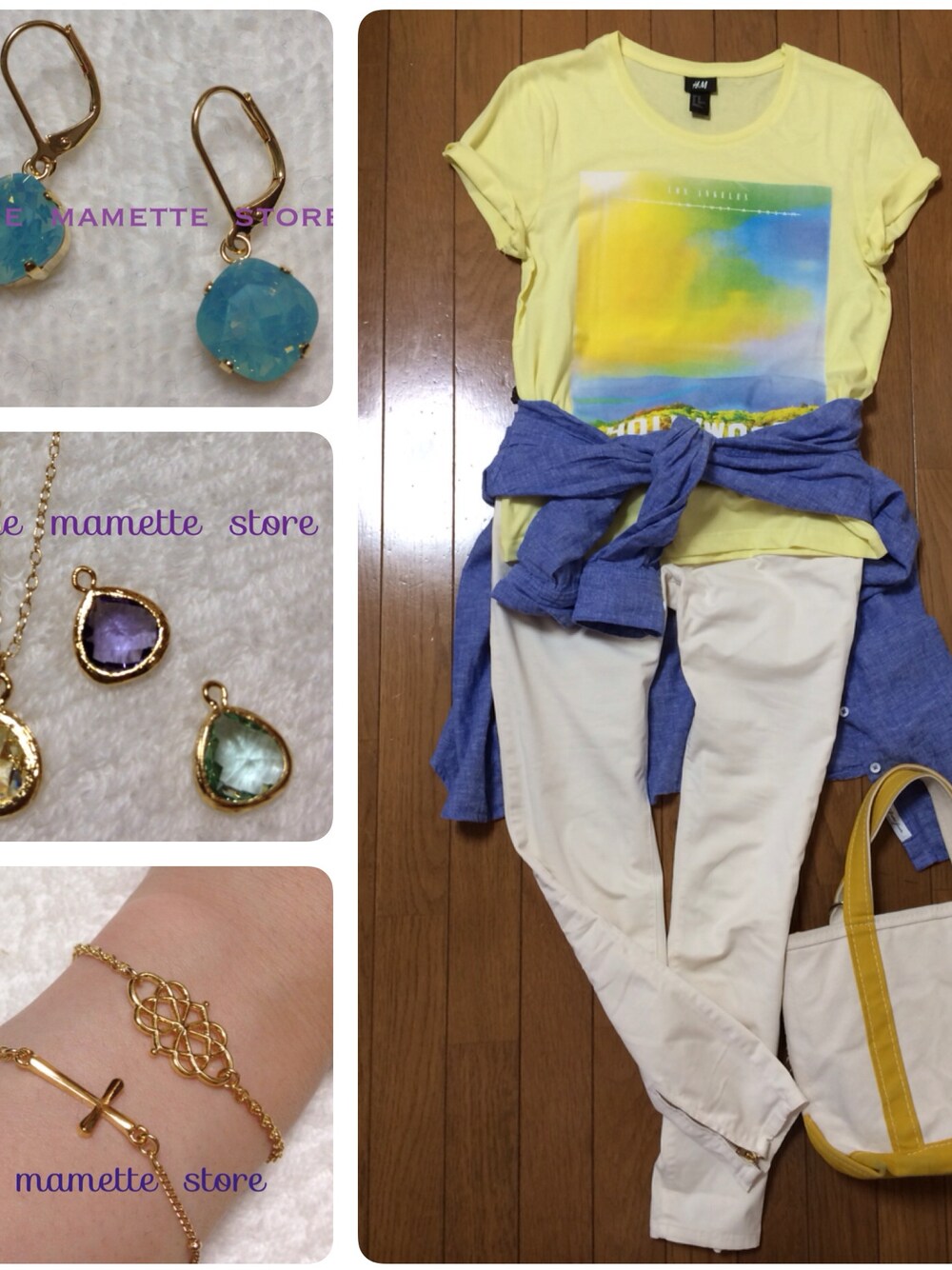 tee_h&m shirt_h&m pants_zara accessories_the mamette store ポップな色合いの服には、きれいめのアクセで(o^^o)