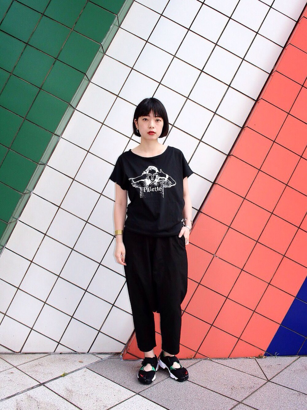 mamiのTシャツ/カットソー「THE WOMEN TEE type WIDE(BLACK)」を使ったコーディネート