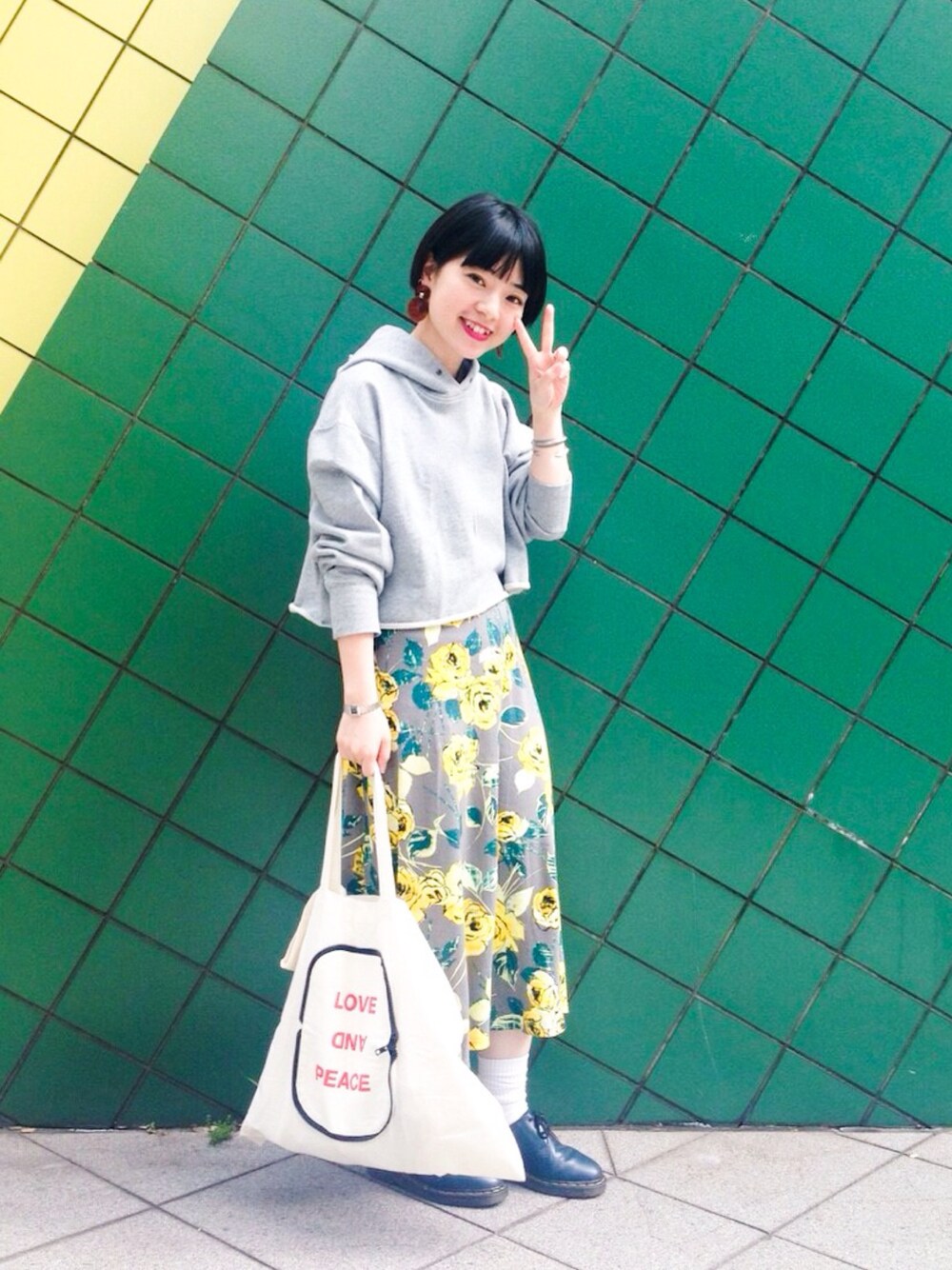 mamiのスウェット「【高橋愛さんプロデュース】ラブ&ピースプロジェクト 高橋愛さんデザイン ピース刺しゅうスウェット<レディース>」を使ったコーディネート