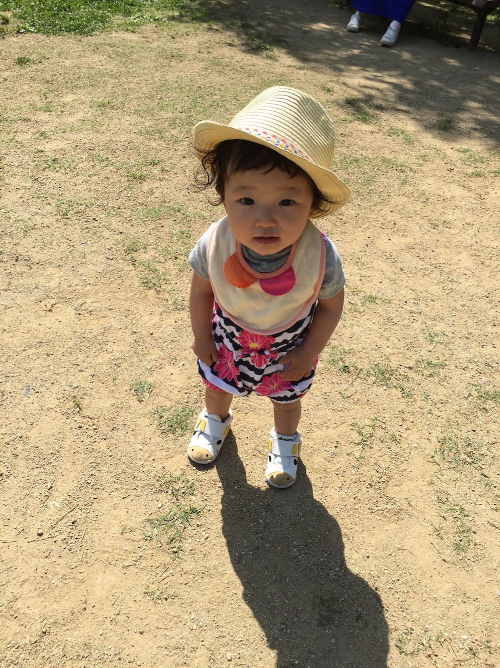 ギャップのアウトレットで買ったサロペットが主役。保育園で着れないから、お休みの日はサロペットかワンピースばっかり。 今日は、三輪車を買ってもらったので、公園へー♡