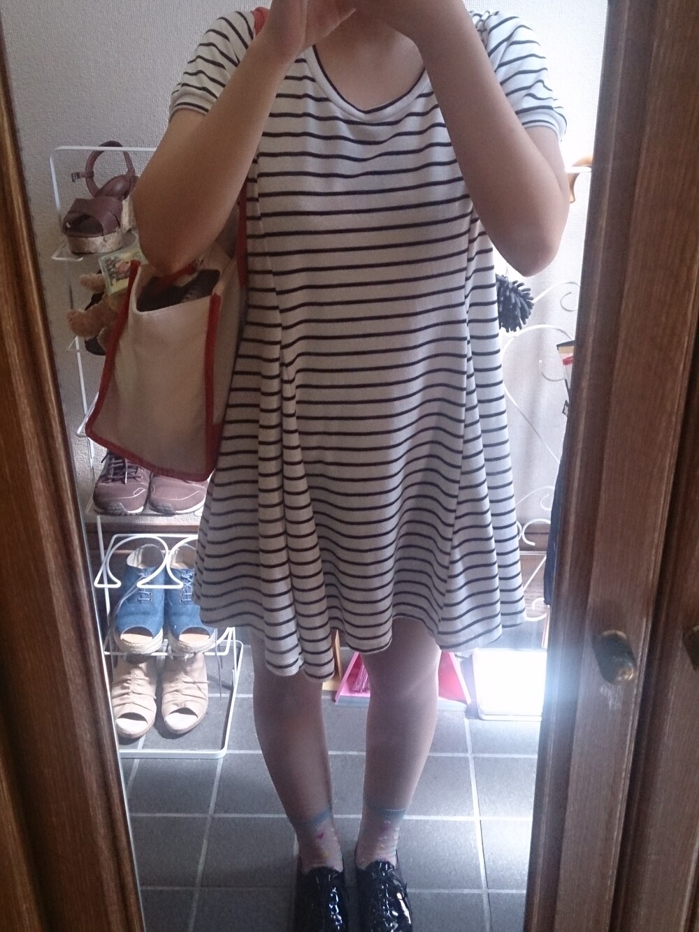 Mamiko.Mのワンピース「ボーダーフレアワンピースショートスリーブ 522041」を使ったコーディネート