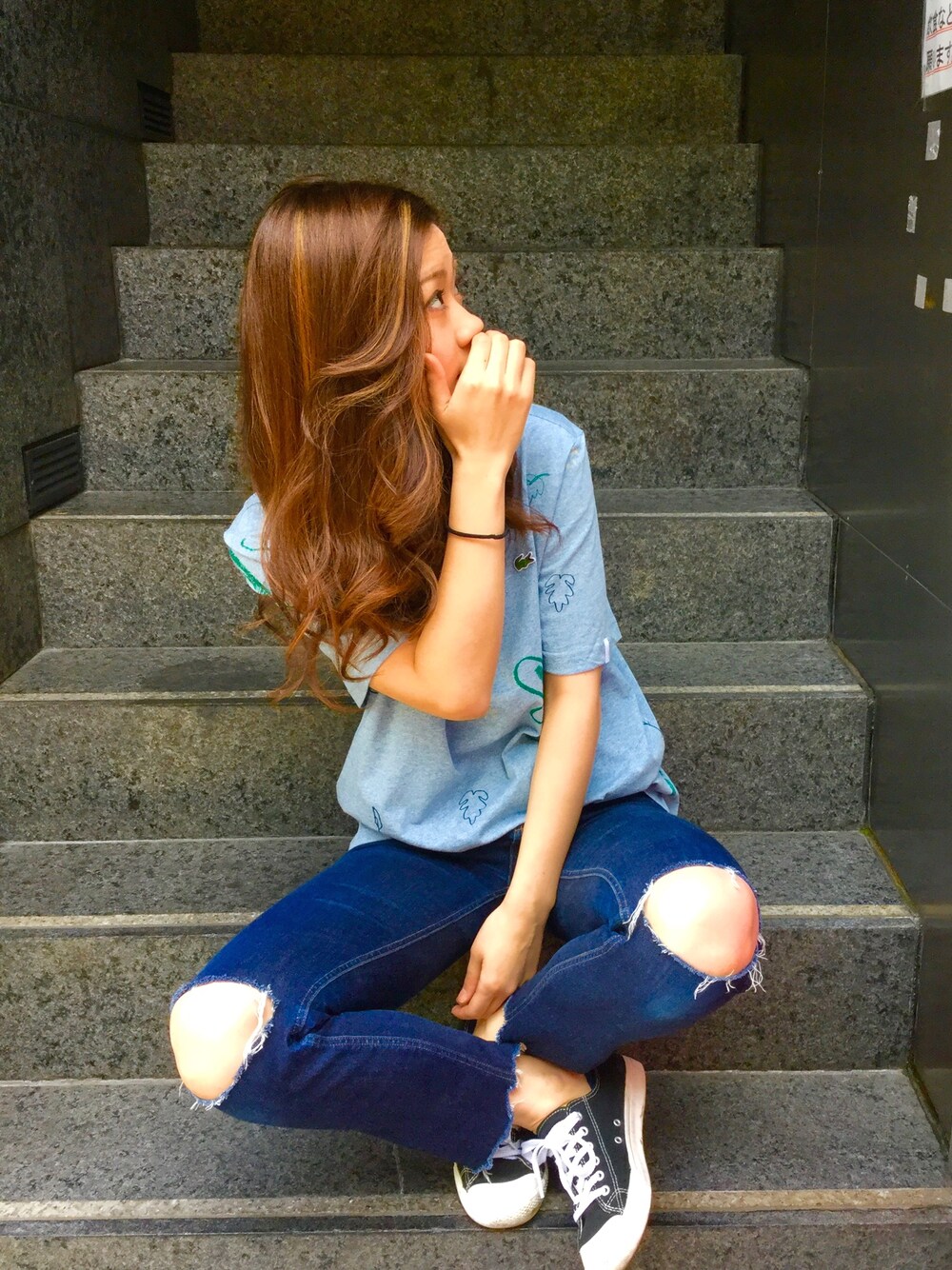 こんにちは☀︎ LACOSTE L!VE のメンズTシャツを、 デニムであわせてラフコーデ❤︎❤︎ ワイドにゆったり着るのが可愛いですね❤︎ 店頭にも見に来てください^ ^❤︎